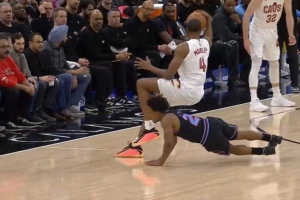GIF-哈登差点失误,小莫布里被塞克斯顿拼抢犯规