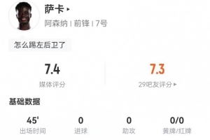 下一篇: 热苏斯本场数据:1进球1过人成功+16次丢失球权,评分7.6