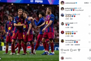 传奇的鼓励!伊涅斯塔社媒晒巴萨球员合照:骄傲,加油巴萨!
